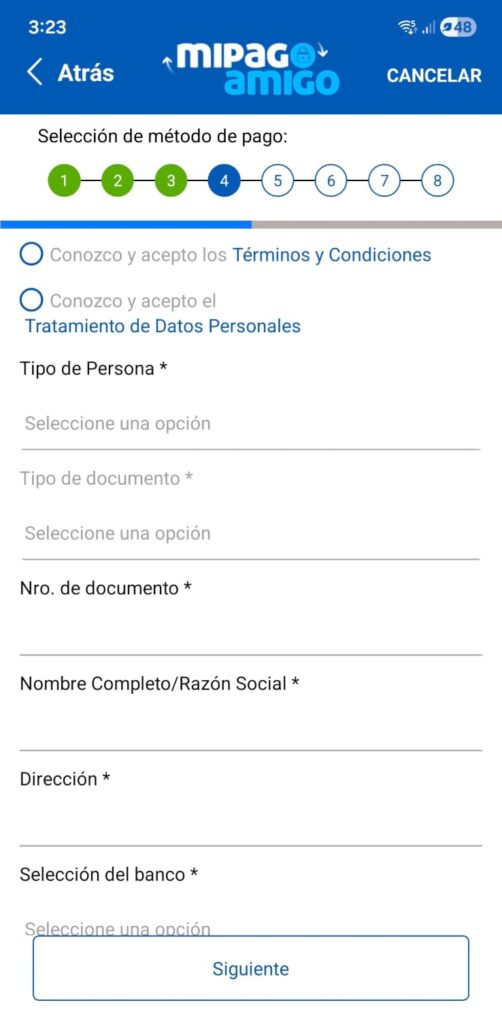 Nota: Usted puede realizar este proceso descargando la aplicación Mi Pago Amigo en su celular o ingresando desde el navegador de su computador en www.mipagoamigo.com. Los pasos son exactamente los mismos.